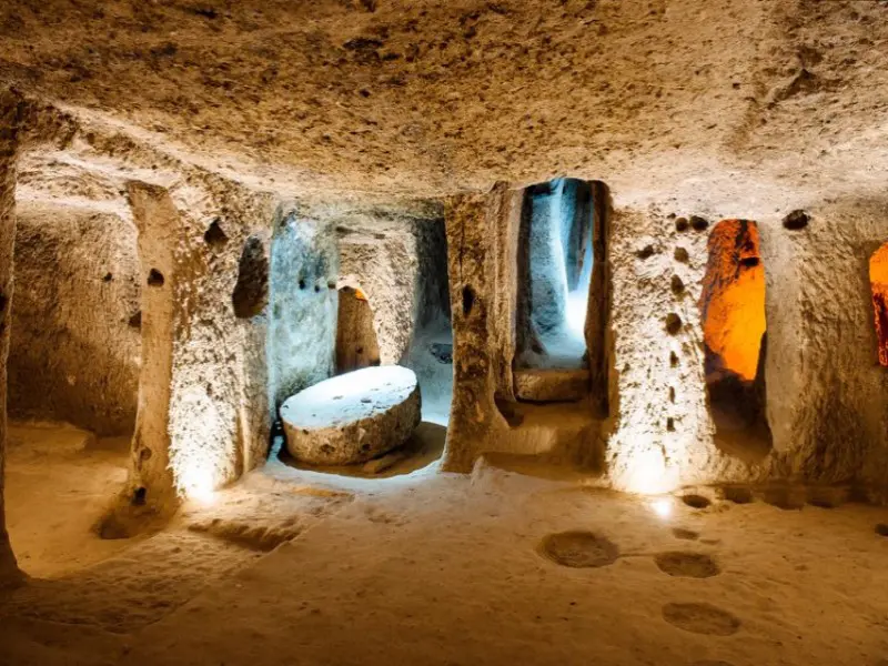 Αναχώρηση για τη μικρή κωμόπολη Σινασσό (Μουσταφά-πασά/Mustafapaşa) με έντονο το ελληνικό στοιχείο, όπου θα επισκεφθούμε την εκκλησία Κωνσταντίνου και Ελένης, το πιο καλοδιατηρημένο ναό της περιοχής. Συνεχίζοντας το οδοιπορικό μας θα φθάσουμε στην υπόγεια πολιτεία Μαλακοπή (Ντερίνκουγιου, Derinkuyu), που είναι σκαμμένη περίπου 80 μέτρα κάτω από έναν λόφο με ολόκληρα δωμάτια, αποθήκες, εκκλησάκια κλπ. Επιστροφή στο ξενοδοχείο μας. Δείπνο. Διανυκτέρευση.
